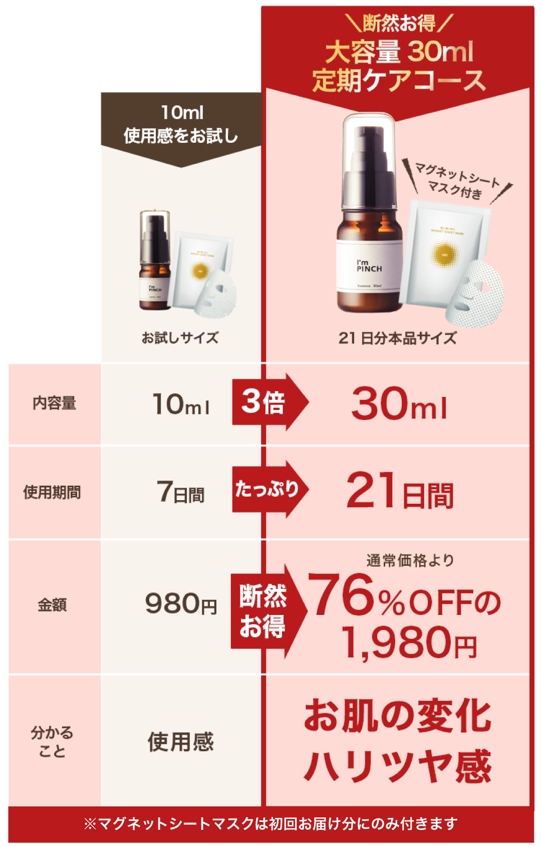 ※こちらはアイムピンチ美容液とマグネットシートマスクの両方をお試しいただくためにセット販売するコースになります。